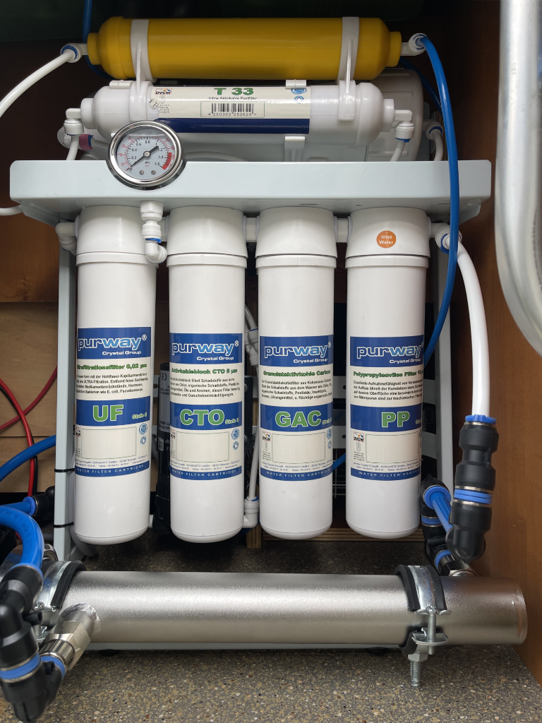 The function of the Reverse osmosis and UV-C system has already been described. The installation in – our – motorhome, Flair 7100 built in 2005, will be described here. The special features of this vehicle version are discussed, where the optimal installation location is and what pitfalls need to be taken into account.