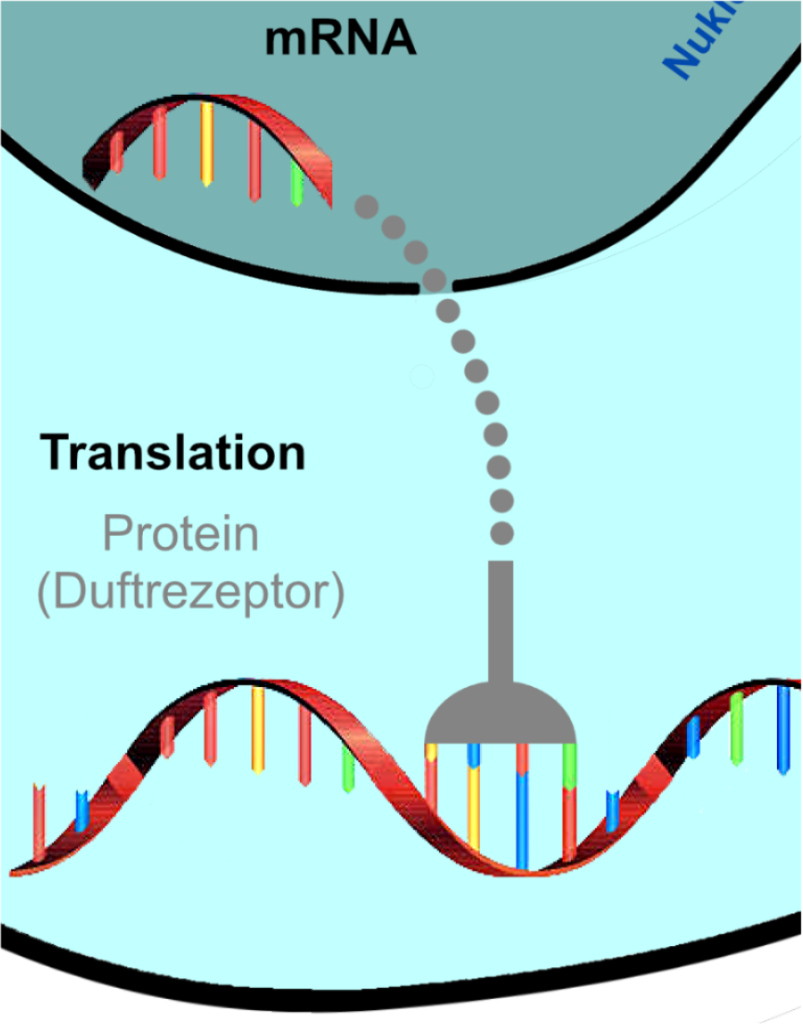 A transzláció által termelt fehérje illatfelvevőnek szolgál. Amint egy szagmolekula kötődik a receptorhoz, a megfelelő jel segítségével kiváltja a specifikus hatást.