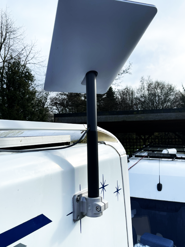 Anten bir anten üzerine monte edildiğinden Depolama konumu Bu konum, antenin dar kenarı hareket yönüne bakacak şekilde konumlandırılırsa, mümkün olan en düşük rüzgar yükü ile sonuçlanan bir seyahat konumu olarak kullanılabilir. Bu nedenle, antenin neredeyse dikey bir konuma getirildiğinden emin olmak önemlidir, ancak dar tarafla otomatik olarak paralel olması gerekmez. Bu, yola çıkmadan önce direği kelepçe braketinde döndürerek manuel olarak yapılmalıdır.