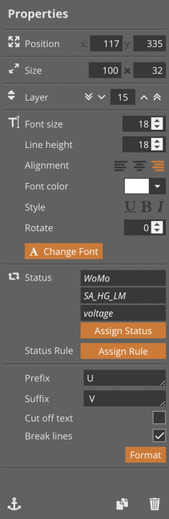 设备数据或系统变量值现在可以根据需要使用符号(包括自创符号,使用前必须相应导入)在界面上定位。为此,可为文本字段或符号分配一个状态: